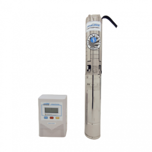 Pompa submersibila solara pentru apa curata: MASTRA 4MHC(4SP5-04)-8-44-48 500, putere nominala 550W, 48V DC, debit maxim 8m3/h, inaltime de pompare 44m, panou de comanda M48